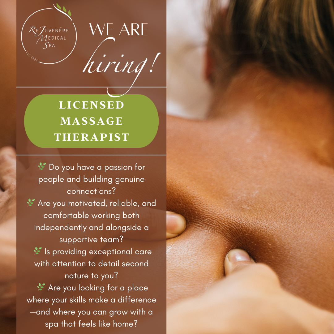 We’re growing and looking to welcome a Licensed Massage Therapist and a Nail Technician to our ReJuvenere family.